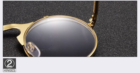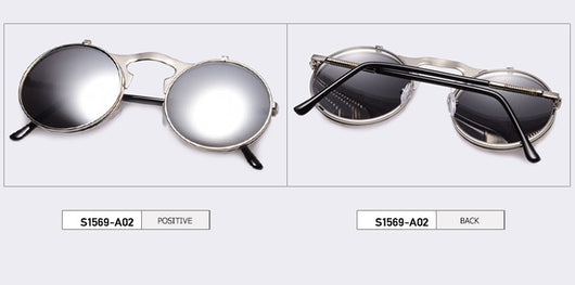 Featuring a retro punk look with large, round UV protection lenses that can be pulled up to expose your eyes for that sizzling and stunning style. The nose pads connect to the frame in such a concise arch that gives additional luxury touch. Available in 5 exquisite color  combination. Works best when maintaining a stoic, doesn't give a damn face!